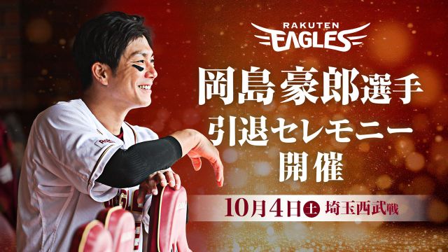 10/4(土)埼玉西武戦「岡島 豪郎選手 引退セレモニー」を開催いたします - 東北楽天ゴールデンイーグルス