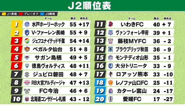 サッカーJ2リーグは、20日(土)に第30節の10試合が行われました。