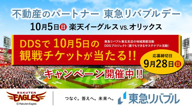 【9/28(日)まで!】DDS(誰でもできるサステナブル)活動に参加して、観戦チケットが当たるキャンペーンに応募しよう! - 東北楽天ゴールデンイーグルス