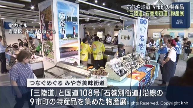 宮城県の特産品を集めた物産展が、仙台市青葉区で始まりました。 東北電力グリーンプラザで始まったのは三陸自動車道と、国道108号通称石巻別街道沿線の9つの市と町…