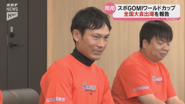 ゴミ拾いにスポーツの要素を盛り込んだ=スポGOMIワールドカップの県大会優勝チームが、周南市長に全国大会への出場を報告しました。