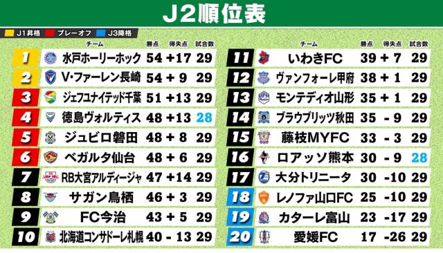 残り10試合となったサッカーJ2リーグ。13日(土)、14日(日)までに第29節の9試合が開催されました。