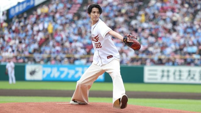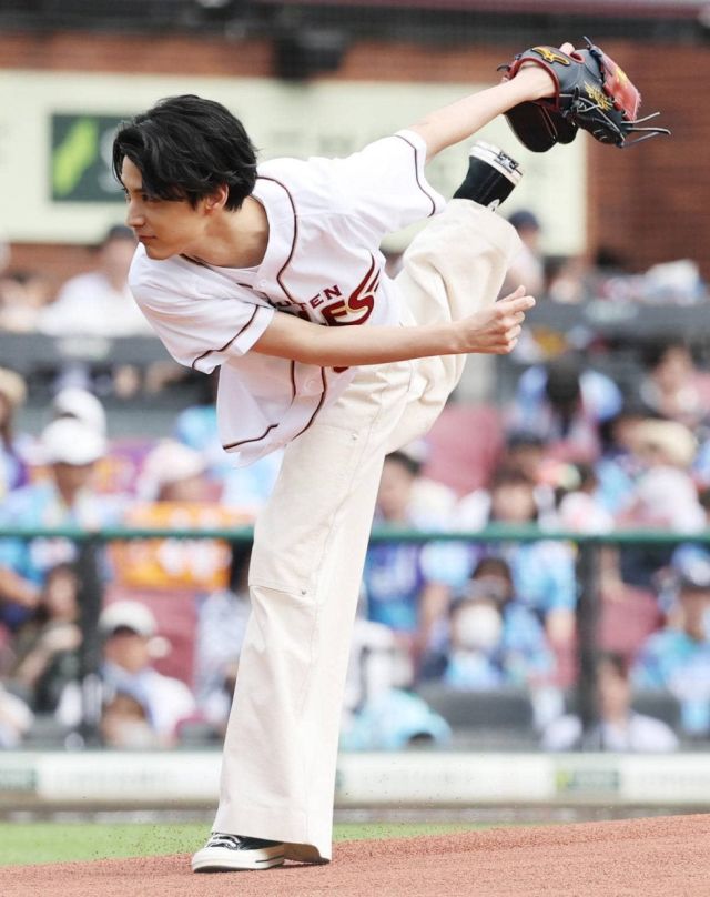 <楽天-ロッテ>◇14日◇楽天モバイルパーク仙台市出身の俳優渡邊圭祐(31)が、始球式に登場した。背番号「022」のユニ…