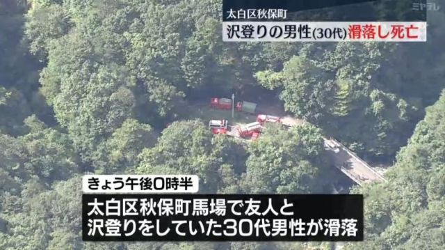 14日昼すぎ、仙台市太白区秋保町の山林で沢登りをしていた30代の男性が滑落し死亡した。