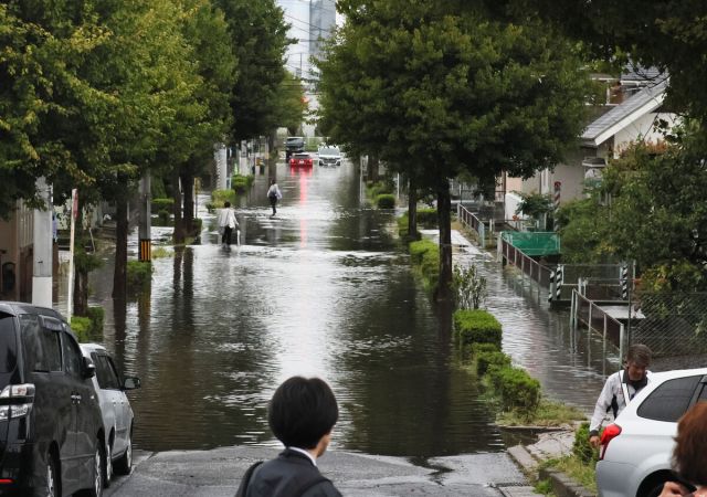 1日の局地的豪雨で仙台市宮城野区は住宅の浸水や車の水没が相次いだ。…