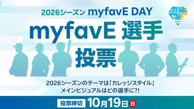 【10/19(日)まで】2026シーズンmyfavE DAYでメインビジュアルを務めてほしい選手に投票しよう! - 東北楽天ゴールデンイーグルス