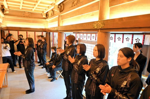 バレーボール女子、Vリーグのリガーレ仙台は10日、仙台市宮城野区の榴岡天満宮で2025~26年シーズンの必勝を祈願した。 選手やスタッフ計21人が参拝し、ボ…