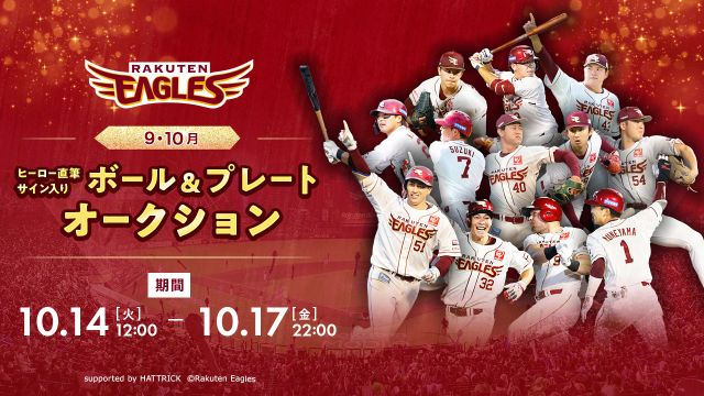 【10/14(火)12:00】9・10月ヒーロー直筆サイン入りボール&プレートオークション開催! - 東北楽天ゴールデンイーグルス
