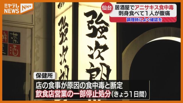 宮城県は、仙台市青葉区の居酒屋でアニサキスによる食中毒が発生したと、発表しました。