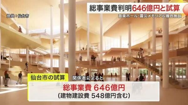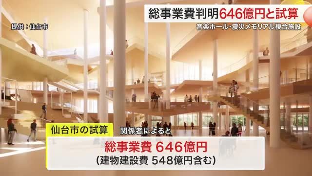 仙台市が青葉山に整備する音楽ホールと震災メモリアル拠点の複合施設をめぐり、総事業費が「646億円」になる見込みであることが、関係者の取材で分かりました。複合施…