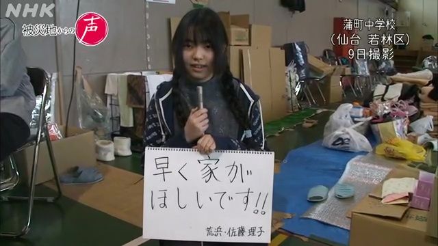 沿岸部の仙台市荒浜に暮らしていた。津波で自宅が流されてしまった。震災から1か月後、「早く家がほしい」と語っていた。