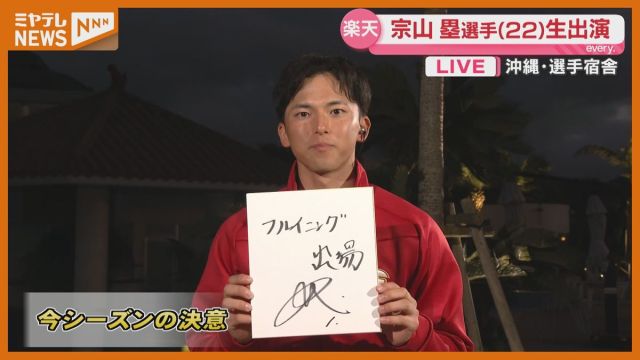 プロ野球・楽天のキャンプ地沖縄から生中継です。ルーキーイヤーの昨シーズン、ショートのレギュラーとして大活躍した宗山塁選手が生出演です。