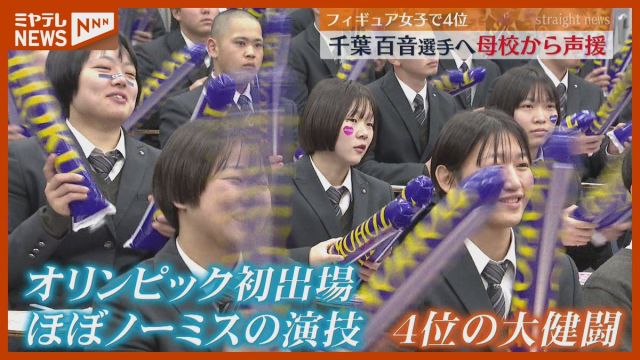 ミラノ・コルティナオリンピック、フィギュアスケート女子シングルで4位になった仙台市出身の千葉百音選手の母校の東北高校では、20日朝 パブリックビューイングが行…