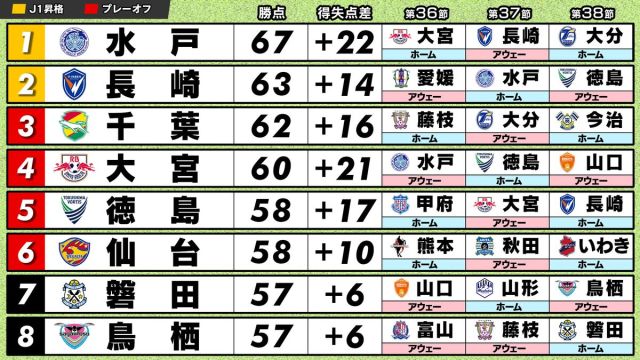 残り3試合となっているサッカーJ2リーグ。J1自動昇格の『2』、昇格プレーオフの『4』枠の争いも熾烈を極めています。