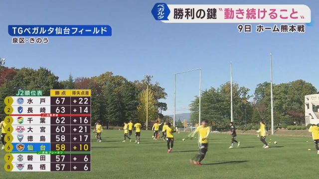 J2のリーグ戦は残り3試合、ベガルタ仙台は9日にロアッソ熊本と対戦します。攻撃では、より動き続けることが勝利の鍵を握ります。
