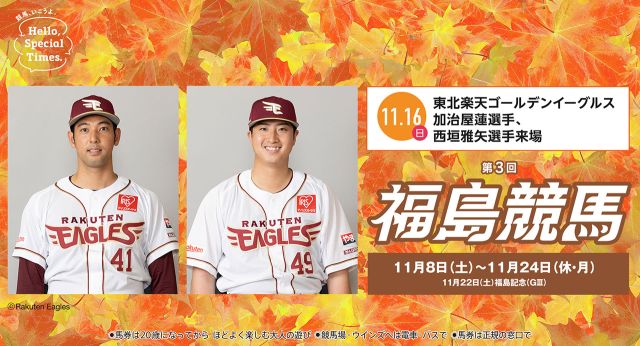 【11/16(日)】JRA福島競馬場にてレース終了後のトークショーに加治屋選手、西垣選手が登場! - 東北楽天ゴールデンイーグルス
