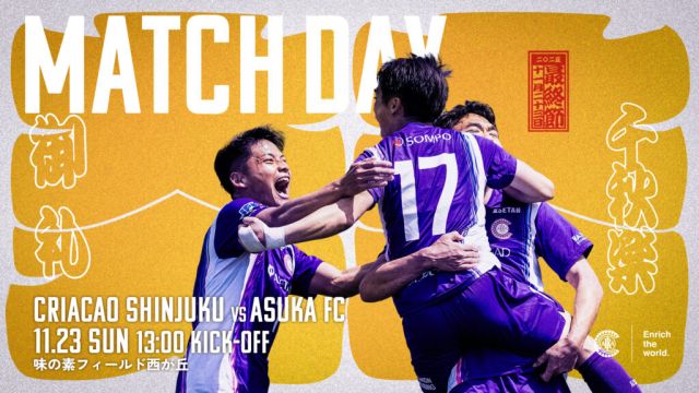 Criacao Shinjukuは、11月23日(日)に開催される第27回JFL第30節(最終節)を株式会社深松組およびアクアイグニス仙台の冠試合とし、「クリ…