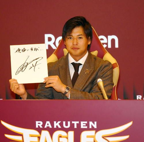楽天・黒川史陽内野手が6日、仙台市内の球団事務所で契約更改に臨み、2440万円増の年俸3300万円(金額は推定)でサインした。今季の860万円から284%ア…