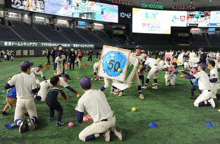 日本野球機構(NPB)と日本高校野球連盟が連携して取り組む未就学児を対象とした普及事業の第1弾が16日、東京ドームで行われた。約350人の幼稚園・保育園児と指…
