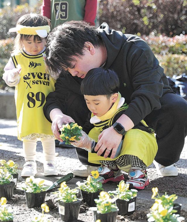バスケットボールB1仙台を運営する仙台89ERS(仙台市)は15日、仙台市太白区のJR長町駅前などで、チームカラーである黄色のビオラの苗やチューリップの球根…