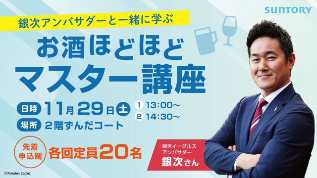 11/29(土)銀次アンバサダーと一緒に「笑顔で、健康的に、おいしいお酒の飲み方」について学ぼう! - 東北楽天ゴールデンイーグルス