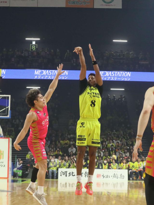 仙台対秋田 3点シュートを狙う仙台カルバー(撮影・高橋香奈) - Yahoo!ニュース(日刊スポーツ)