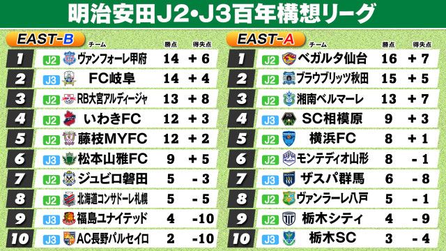 2026/27シーズンのJ2、J3に参加する40クラブがEAST-A、EAST-B、WEST-A、WEST-Bの4グループに分かれるサッカ…