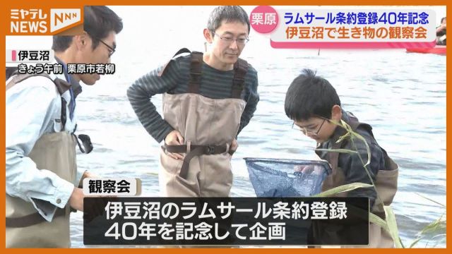 自然の豊かさを感じてもらおうと、宮城県北部の伊豆沼では生き物の観察会が開かれました。
