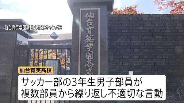 仙台育英高(仙台市)は12日、男子サッカー部で3年生の部員が複数の部員から不適切な言動を受けているなど構造的いじめがあったとして来月開幕の全国高校サッカー選…
