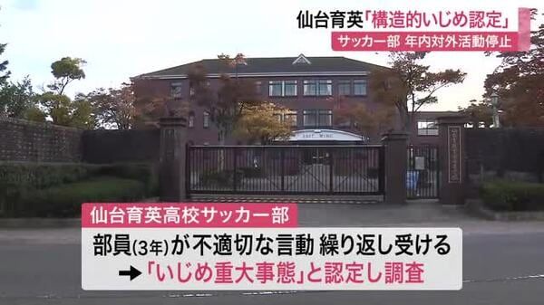 仙台育英高校のサッカー部で部員が、ほかの部員から不適切な言動を受けていた問題で、学校は「構造的いじめ」があったとして、全国高校サッカー選手権大会を含む、年内の…