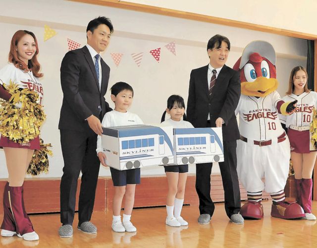 プロ野球東北楽天の則本昂大投手が、仙台市若林区の聖ウルスラ学院英智幼稚園を訪れ、学用品を寄贈した。京成電鉄(千葉県市川市)と協働する慈善活動の一環で、今季の…
