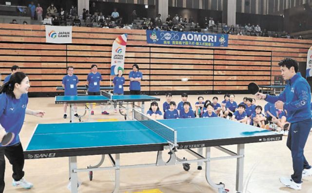 ◇…青森県で来年開かれる国民スポーツ大会のプレイベントとして青森市内であった卓球教室。講師の五輪メダリスト福原愛さん(仙台市出身)に、来賓の宮下宗一郎知事が…