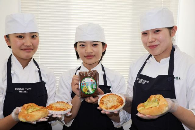 宮城県大郷町の障害者就労支援事業所「パン工房わ・は・わ」は、仙台大明成高(仙台市青葉区)の食文化創志科の3年生14人と協力し、町内の食材を使った2種類のパン…
