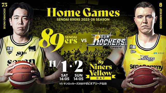 プロバスケットボールBリーグ1部に所属する仙台89ERSのホームゲーム!11/1(土)・11/2(日) は、ゼビオアリーナ仙台で、サンロッカーズ渋谷を迎え撃つ…