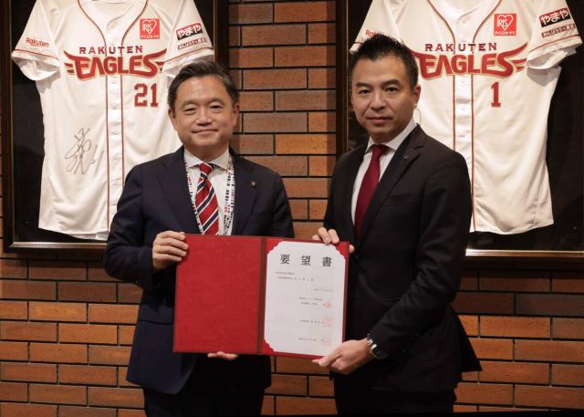 岩手・盛岡市の内舘茂市長が31日、宮城・仙台市内の球団事務所を訪れ、来季の一軍戦開催要望書を提出した。岩手では盛岡市にある「きたぎんボールパーク」で23、2…