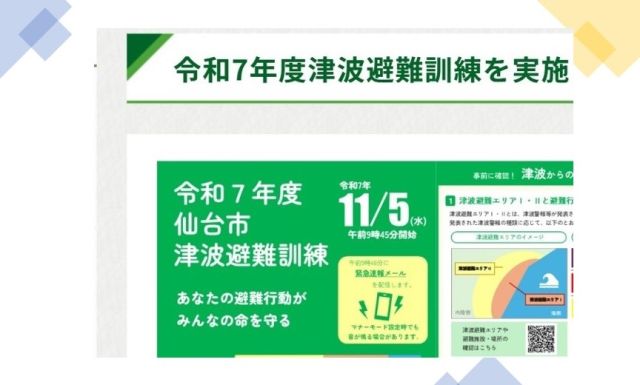 仙台市は11月5日午前、津波避難広報訓練を行う。訓練では仙台市の津波情報伝達システム(屋外拡声装置)、緊急速報