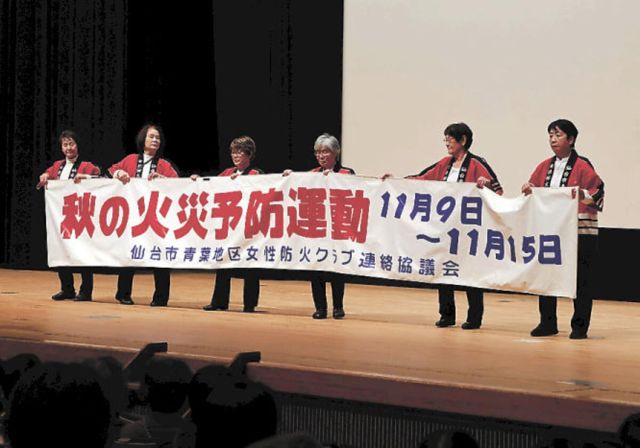 仙台市女性防火クラブ大会が10日、仙台市青葉区のトークネットホール仙台(仙台市民会館)であった。クラブ会員ら約1000人が参加した。 市内6地区の各クラブが…