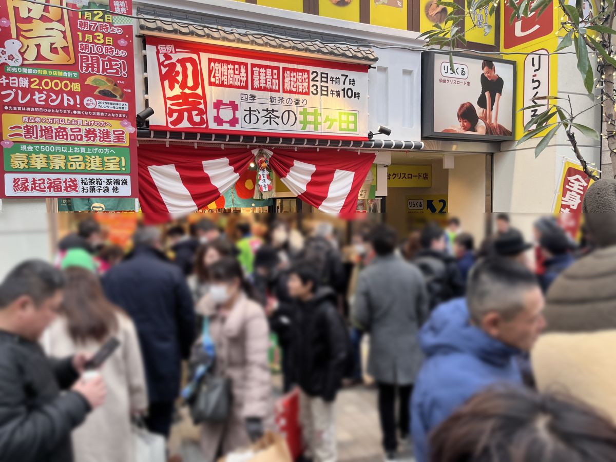お正月の風物詩であり、藩政時代から続く伝統行事「仙台初売り」は来年も1月2日から行われます。2日には各中心部の商店街でおもてなしもありますので、初詣やお買い物などそれぞれの「初」行事をどうぞお楽しみください。